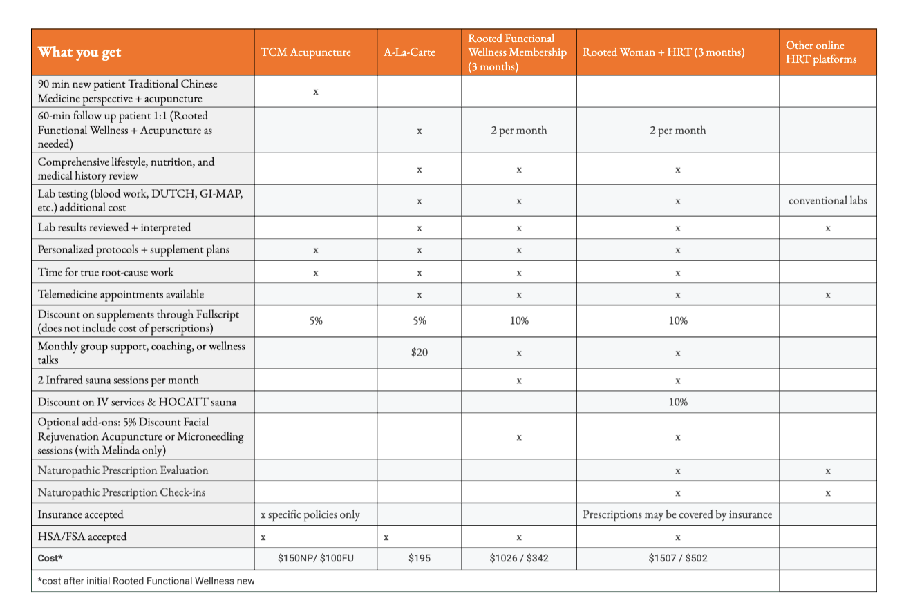 Not looking for Hormone Replacement Therapy, but need perimenopause/menopause support? Rooted Functional Wellness may be the right fit for you.